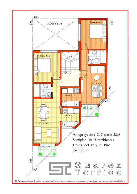 El edificio cuenta con 3 pisos, con dos unidades por planta, en total 6 unidades.
