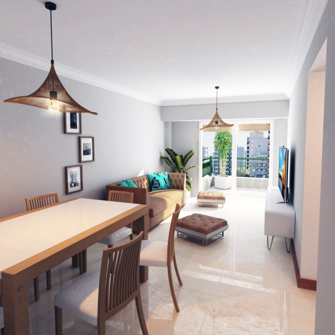 - Amplio living comedor con pisos de porcelanato, con acceso a balcón muy amplio