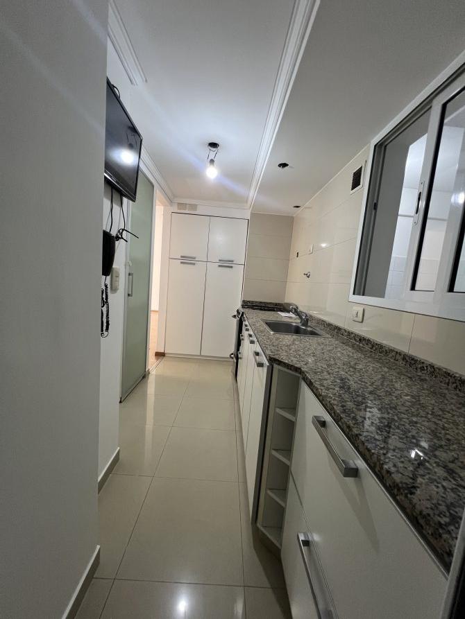 - Living comedor, con piso flotante, al frente con acceso a balcón corrido que agarra todos los ambientes del departamento