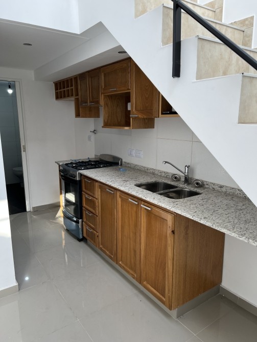 Cochera opcional! Dúplex de 3 ambientes interno. Esta unidad, al contra frente de un edificio, consta de: En planta baja: living comedor de aprox 5x3 mts; cocina integrada con muebles bajo mesada y alacena con puertas en roble macizo, termotanque eléctrico, lavadero integrado, artefacto cocina a gas; amplio dormitorio de 3,20 x 2,75mts con espacio para placard y acceso a pequeño patio; baño completo con artefactos Ferrum y grifería FV. Piso de cerámica.
