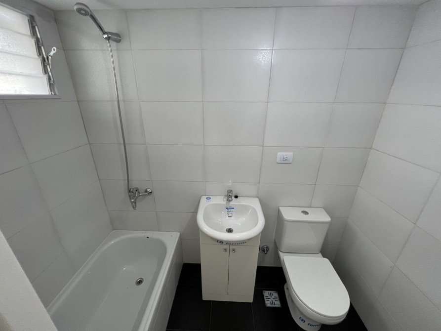 En planta alta: muy amplio dormitorio de 4,75 x 2,75 mts con espacio para placard y baño completo (sin bidet) con box de ducha.