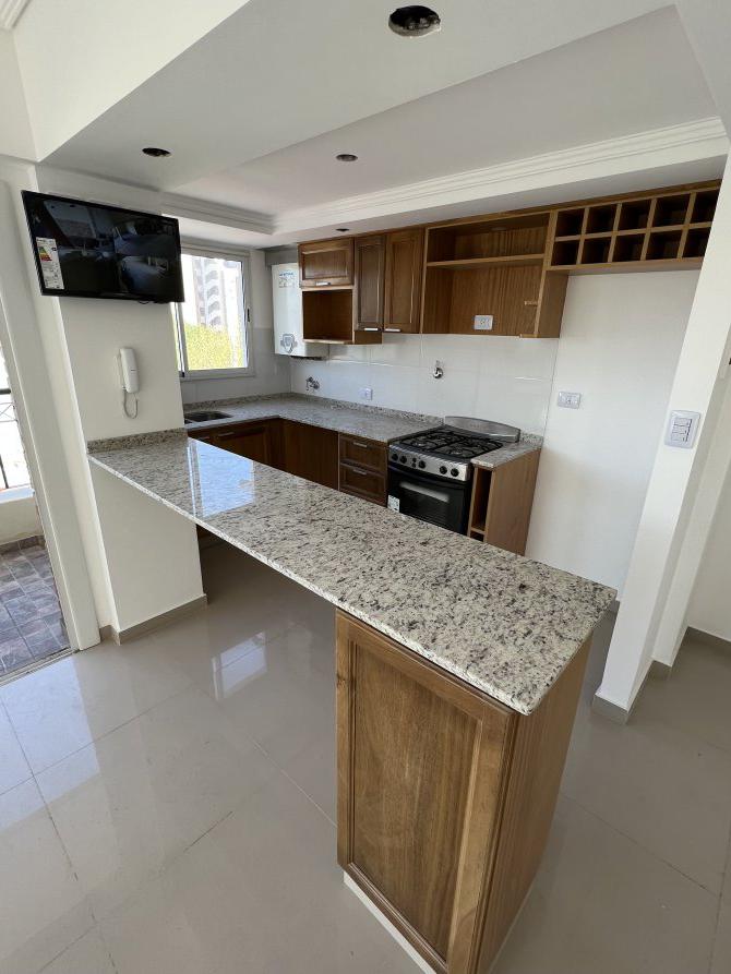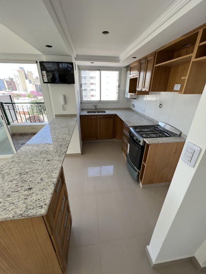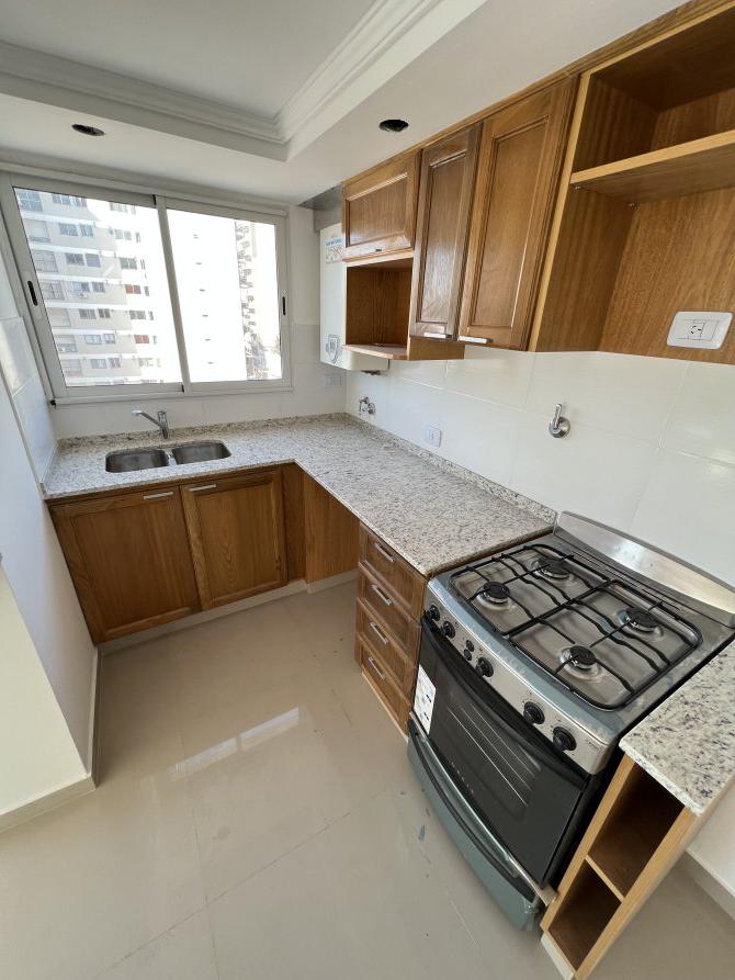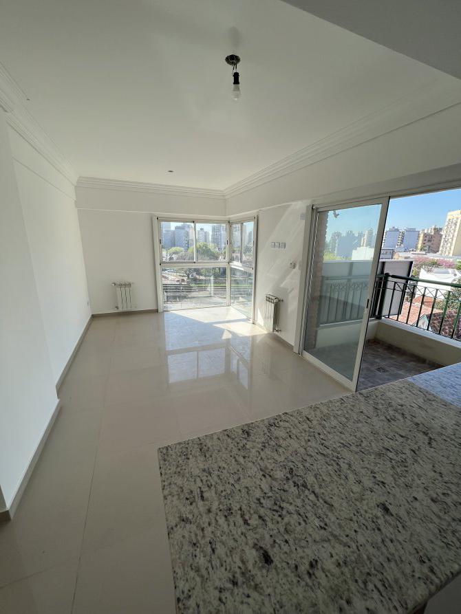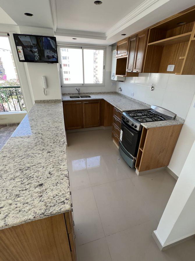 Impecable departamento de dos ambientes a estrenar. Esta unidad, consta de, cocina con ventilación natural integrada con desayunador, mueble bajo mesada y alacena con puertas en roble macizo, artefacto cocina a gas Orbis de acero inoxidable, lavadero integrado; gran living comedor con acceso a balcón y ventanal en L en esquina; baño completo con artefactos Ferrum; amplio dormitorio con frentes e interiores de placard.