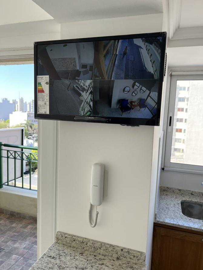 CCTV con cámaras en áreas comunes y televisor de 24" instalado en cocina.