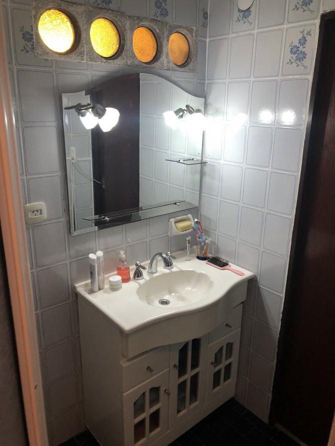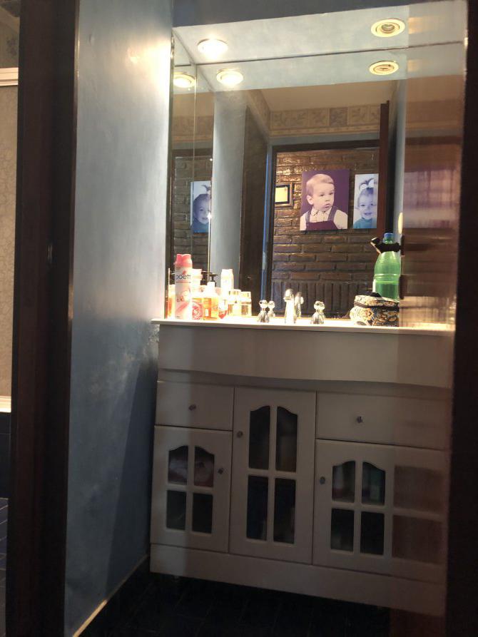 Subiendo escaleras de madera desde el sector de transición del living al comedor, nos encontramos con el primer piso de la casa, donde encontramos los 4 dormitorios y un baño completo; el dormitorio principal con medidas aprox de 3,85 x 3,40 metros, cuenta con muy amplio vestidor y acceso privado al baño (el cual funciona como un suite); segundo dormitorio al frente; y los otros dos dormitorios miran al contra frente de la propiedad. Todos ellos cuentan con frentes e interiores de placard; el baño cuenta con un ante baño (y dos vanitorys -uno para el sector publico y otro para el dormitorio principal-) y separado el sector de ducha con mampara.