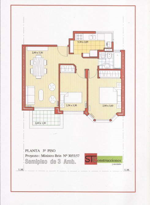 Departamento de 3 ambientes, en tercer piso al frente, super funcional. Esta unidad, situada en la calle Ministro Brin, a solo media cuadra de la Av. 25 de Mayo y tres cuadras de la estación de trenes, consta de: living comedor con acceso a balcón amplio al frente; cocina muy cómoda y separada, con ventilación natural, con muebles bajo mesada y alacena con puertas en roble, artefacto cocina a gas marca Orbis de acero inoxidable, lavadero integrado con pileta de lavar, espacios de cortesía para armar muebles a medida; dos dormitorios al frente con frentes e interiores de placard; un baño completo con artefactos Ferrum y grifería FV.