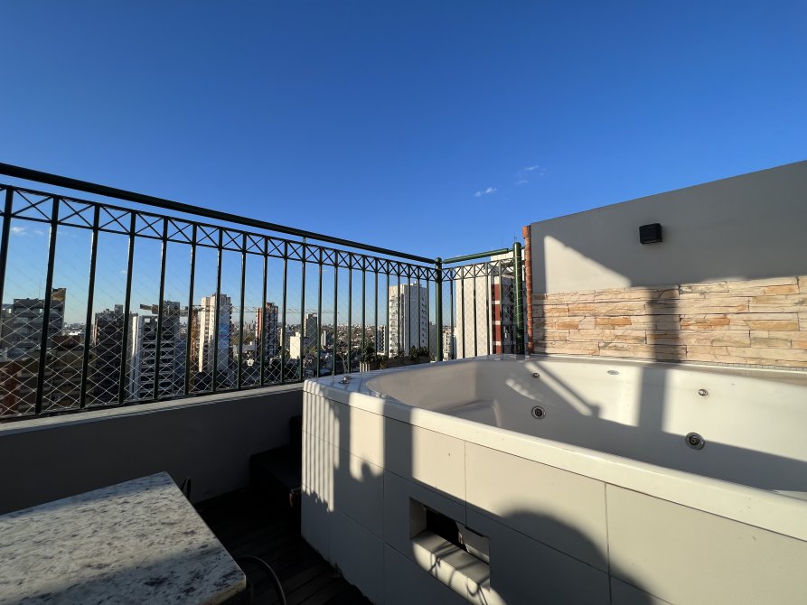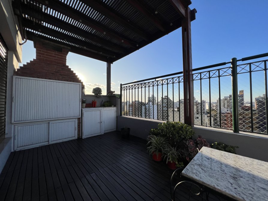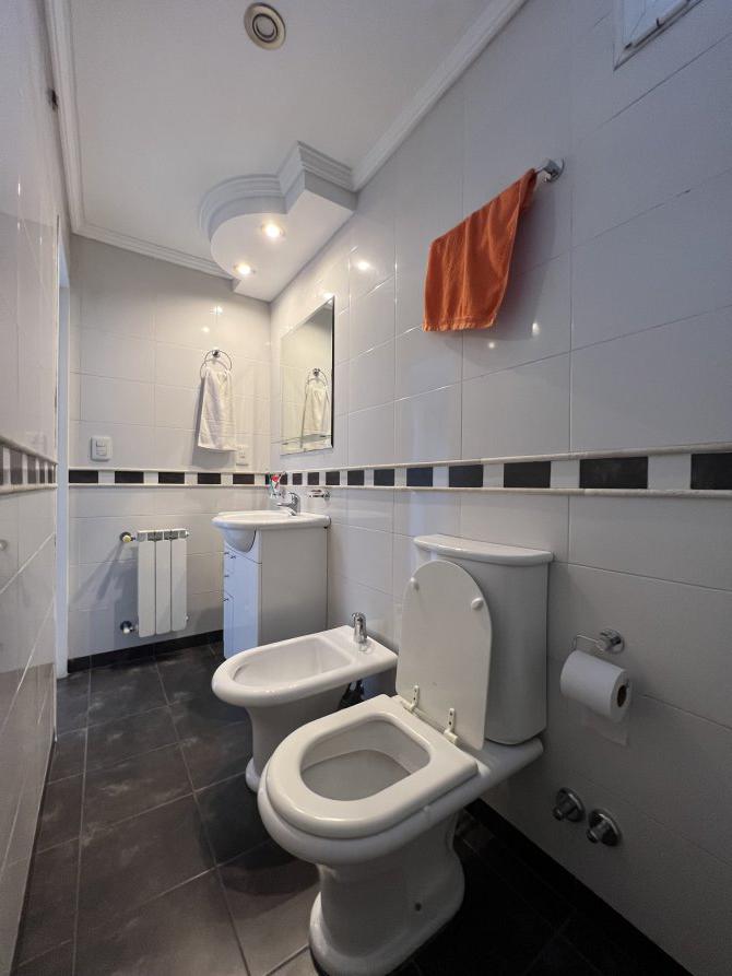 En planta alta: dos dormitorios, uno de ellos medidas de 2,35 x 2,90 mts; y el segundo con medidas 3,10 x 3,05 mts.; segundo baño completo con box de ducha y doble circulación (se puede acceder desde el dormitorio mas grande o desde el pasillo distribuidor). Por último, saliendo del departamento, nos encontramos con la mejor parte del departamento, una hermosa terraza con deck, pérgola en madera, jacuzzi para cuatro personas, parrilla a gas y lavadero con pileta.