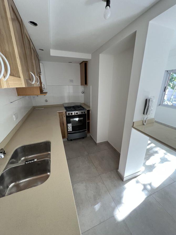 Edificio a estrenar, de planta baja, primer y segundo piso por escalera. Unidades que constan de: living comedor al frente con acceso a cómodo balcón; cocina semi-integrada con muebles bajo mesada y alacena, desayunador, lavadero integrado, artefacto cocina Orbis a gas; baño completo con artefactos Ferrum y grifería FV (idem cocina); dos dormitorios con piso flotante, sin placard.