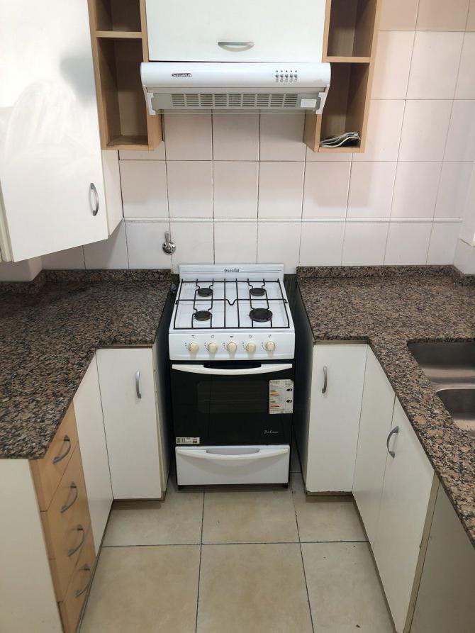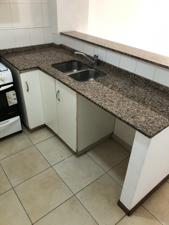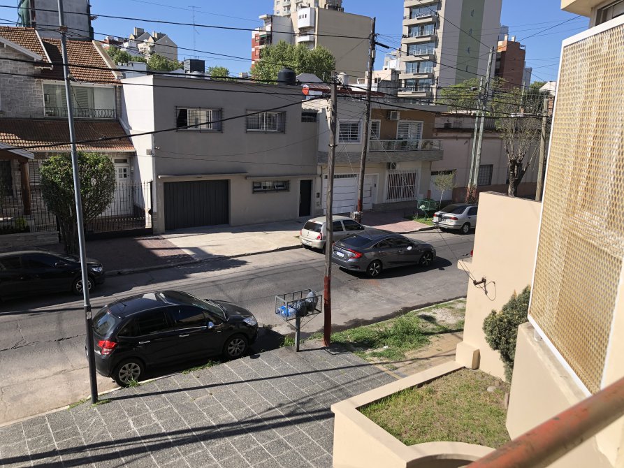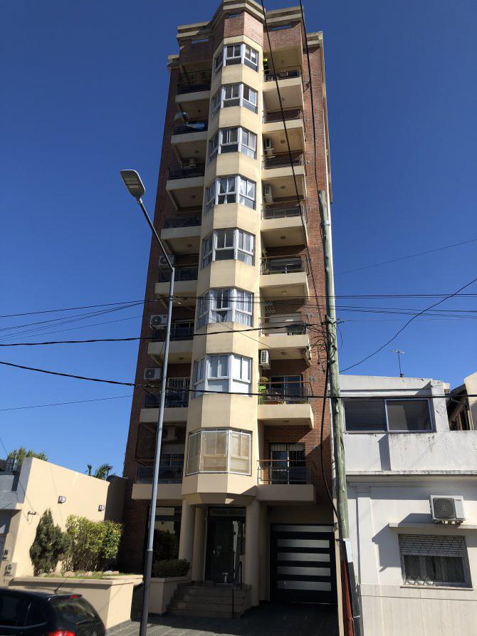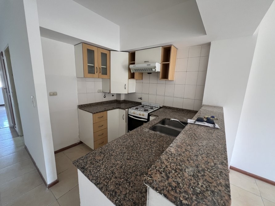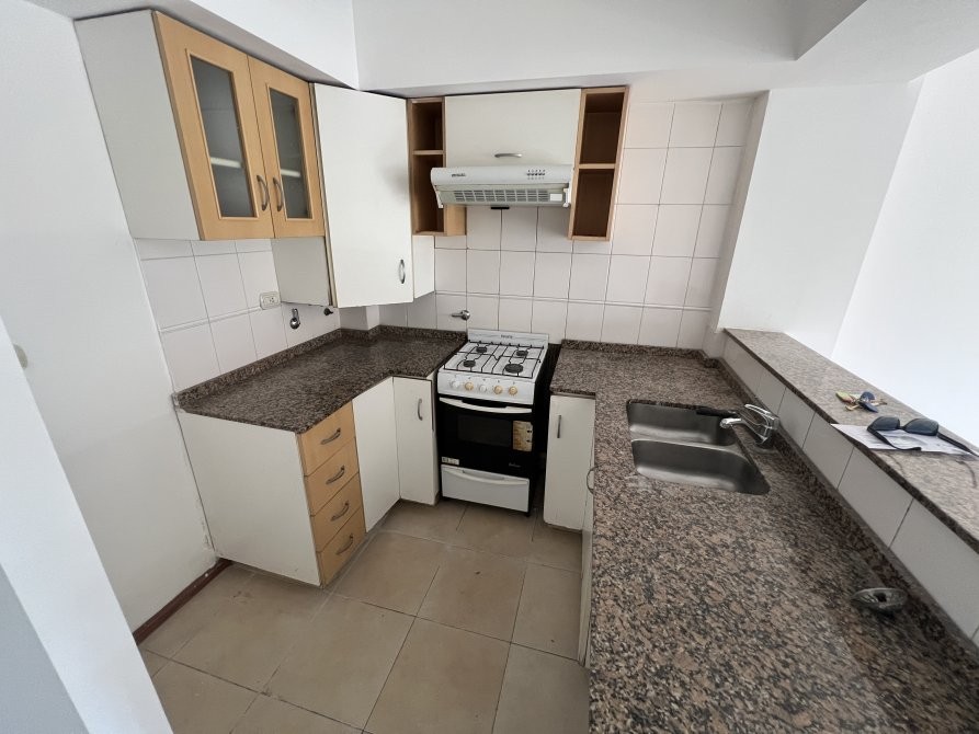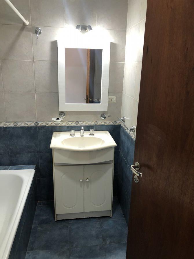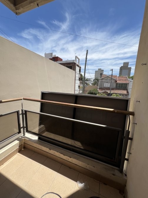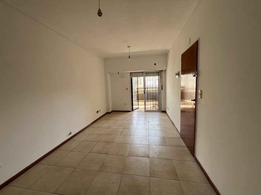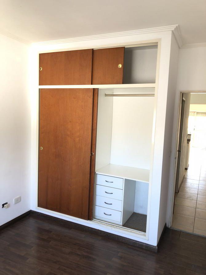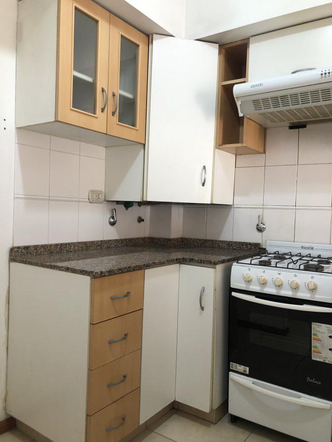 Departamento de dos ambientes en alquiler, al frente en primer piso, tipo pasante. Esta unidad, consta de living comedor al frente con acceso a balcón; cocina con muebles bajo mesada y alacena, con desayunador que conecta con el living; artefacto cocina a gas y spar; cómodo baño completo con bañera; placar de cortesía en pasillo; dormitorio con frentes e interiores de placard y piso flotante.