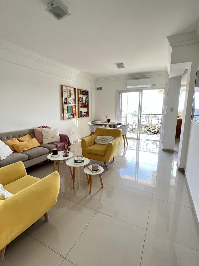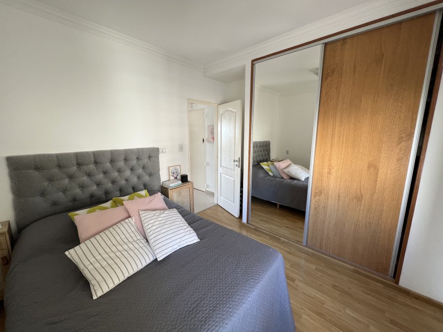 El departamento cuenta con detalles de terminación como molduras en yeso y doble muro perimetral.
