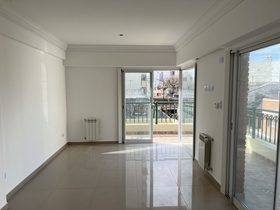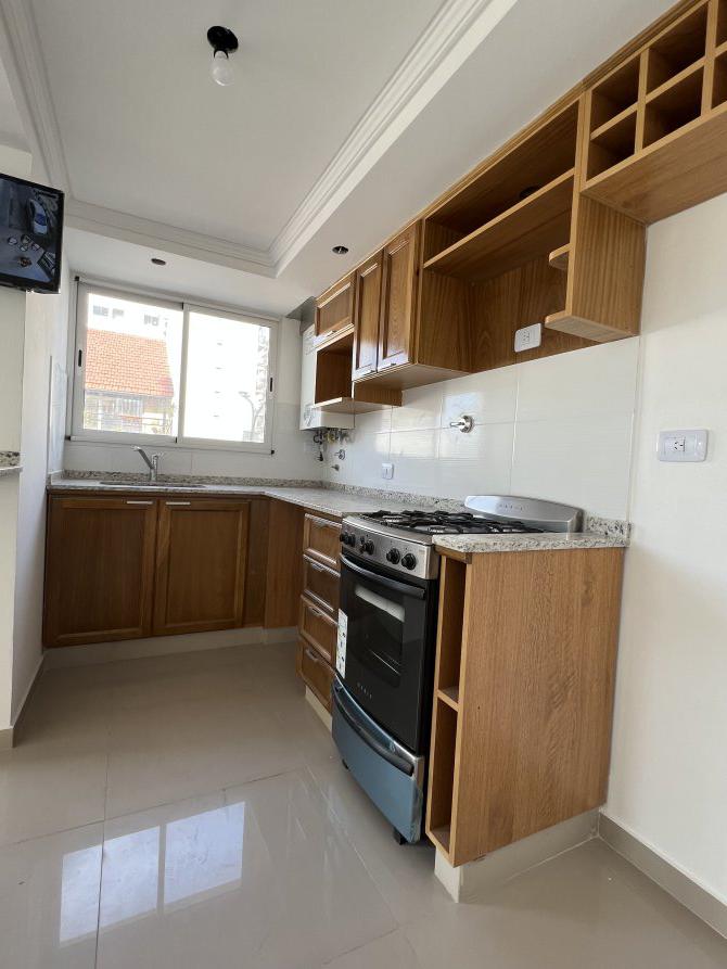 Impecable departamento de dos ambientes a estrenar, en 1º piso al frente sobre la calle Tucumán. Esta unidad, consta de, cocina con ventilación natural integrada con desayunador, mueble bajo mesada y alacena con puertas en roble macizo, artefacto cocina a gas Orbis de acero inoxidable, lavadero integrado; gran living comedor con acceso a balcón y ventanal en L en esquina; baño completo con artefactos Ferrum; amplio dormitorio con frentes e interiores de placard.