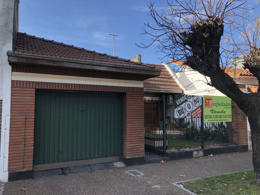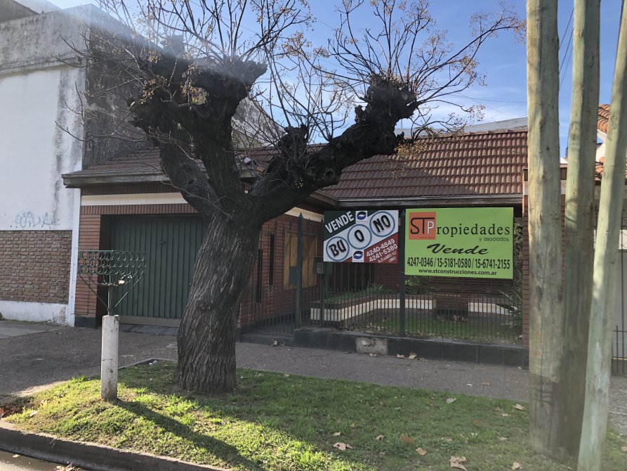 La casa posee garaje para varios autos; patios laterales con canteros y jardín a la calle.