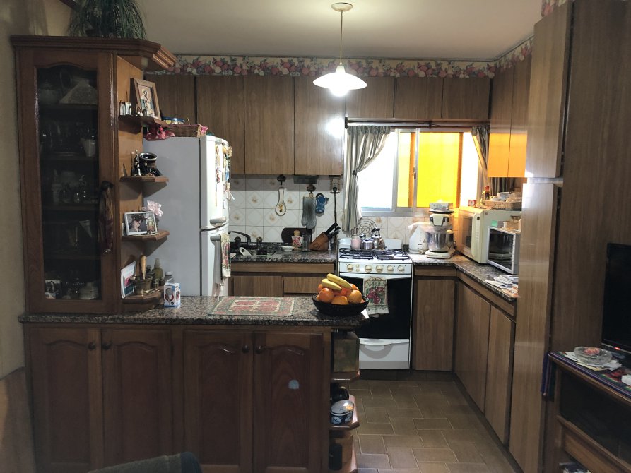 Propiedad de atrás: se accede por galería lateral (que conecta con el garaje) y posee, en planta baja: sector de estar con acceso a baño completo; 2 cuartos (uno con placard) de los cuales uno puede ser utilizado como escritorio o sector de trabajo; muy amplia cocina comedor diario con muebles bajo mesada y alacena; lavadero; y en planta alta: (que accedemos desde escalera del estar) nos encontramos con dos muy amplios dormitorios conectados entre sí, que poseen medidas de 4x4 mts. cada uno con pisos de pinotea.