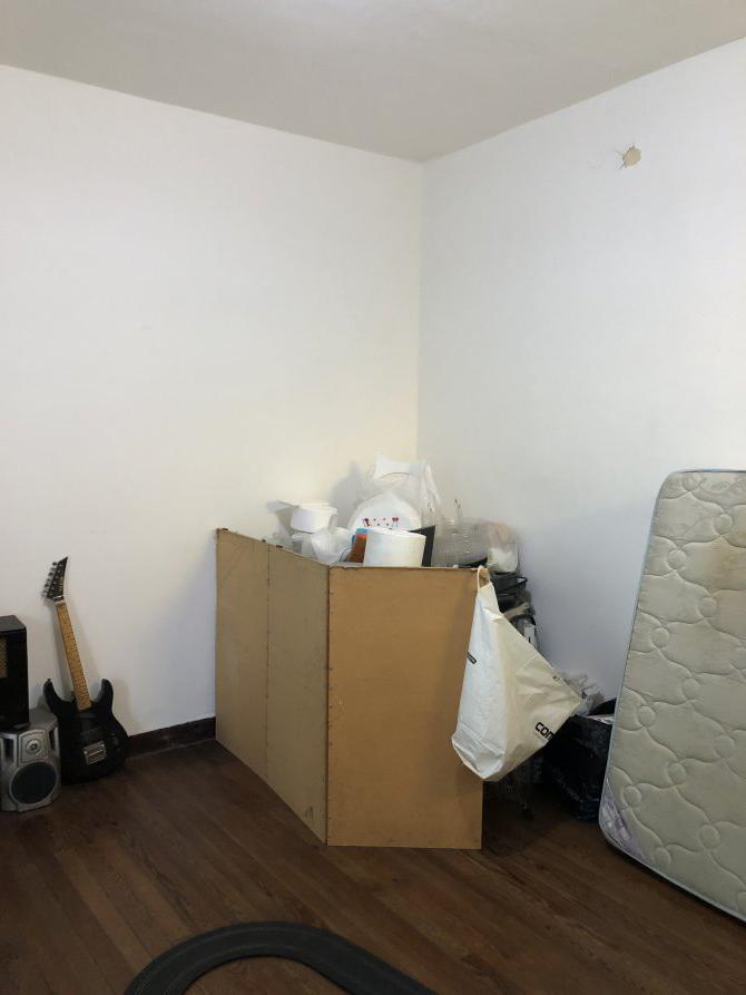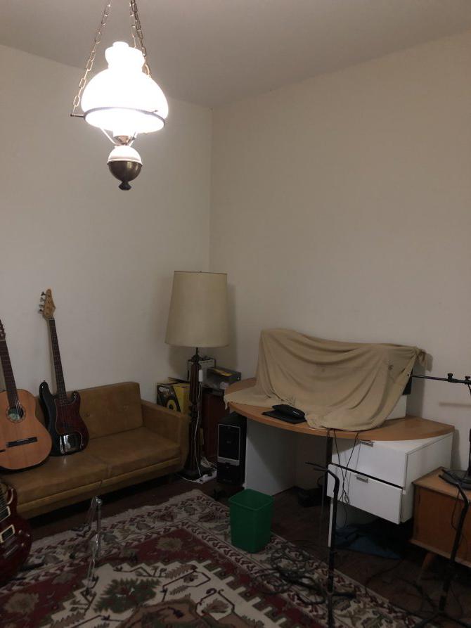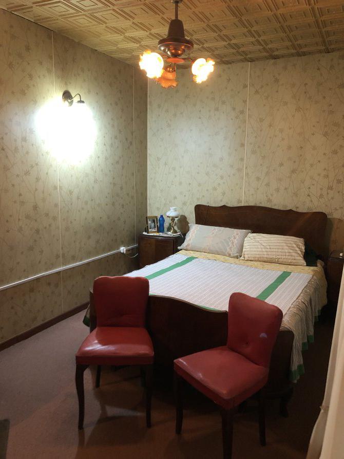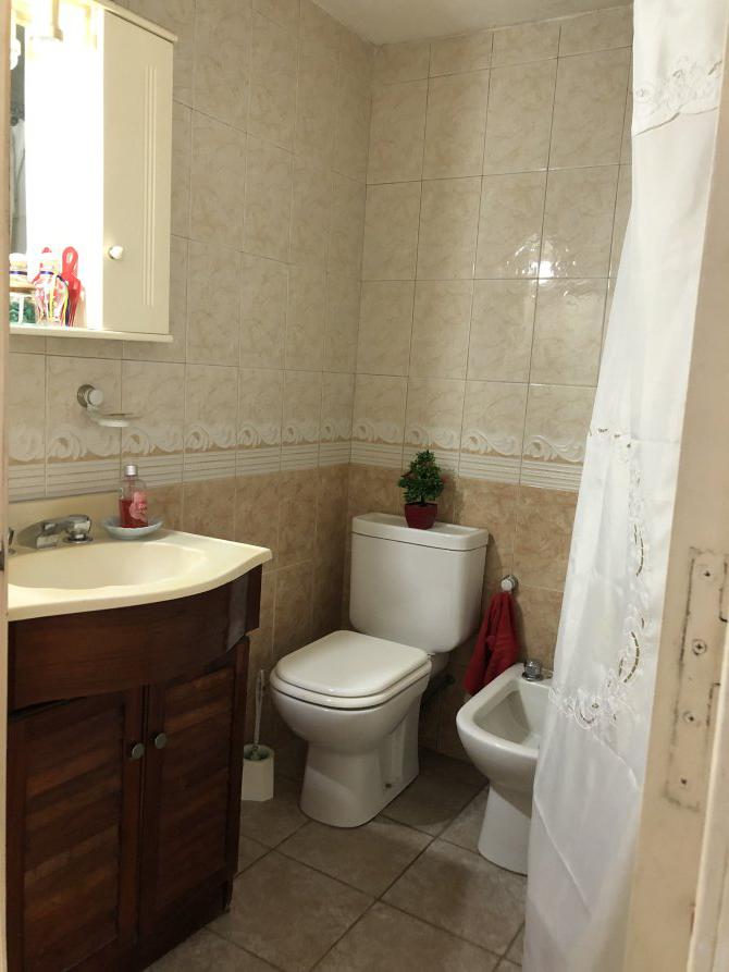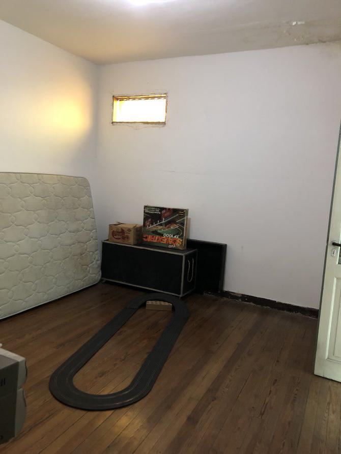 Propiedad al frente: consta de jardín a la calle, garaje para varios autos (con espacio cubierto); dormitorio al frente de medidas generosas con placard; living con ventanal lateral; cocina comedor diario con muebles bajo mesada y alacena, artefacto cocina a gas; baño completo con bañera y mampara. En planta alta: segundo dormitorio muy amplio (que se accede desde escalera en cocina); y pequeño cuarto tipo "depósito" que se accede desde escalera externa y pequeña terraza. Por ultimo, tenemos lavadero externo.