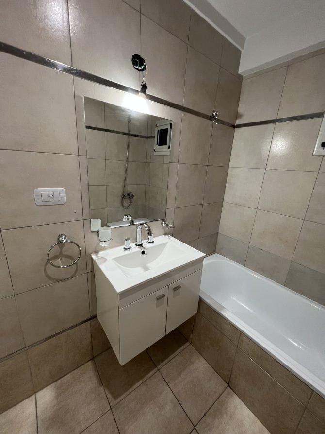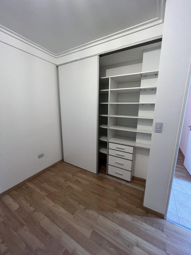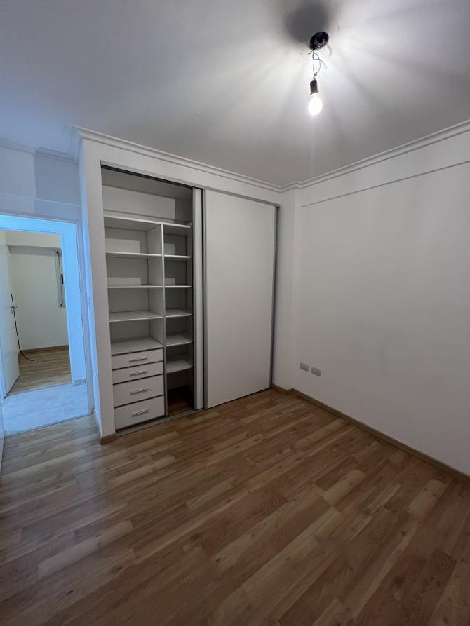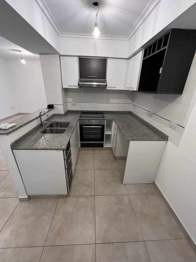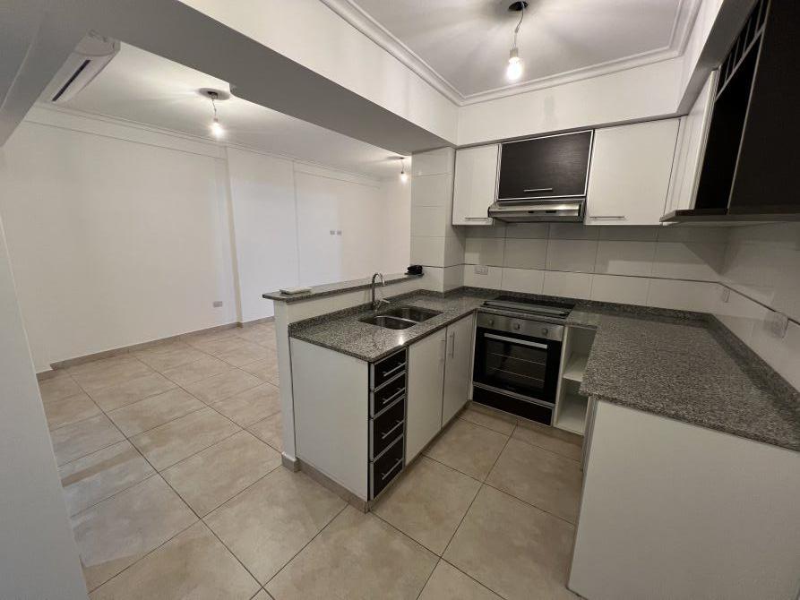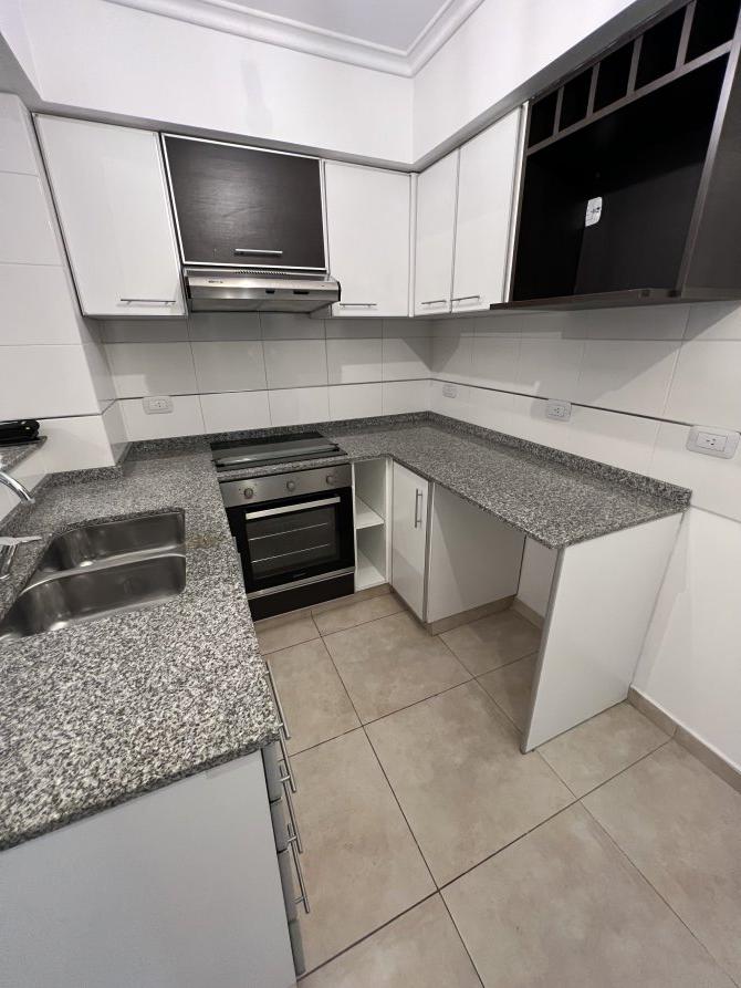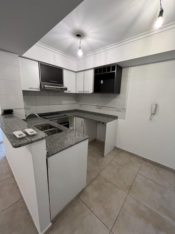 cocina con muebles bajo mesada y alacena; anafe y horno eléctrico marca Candy; lavadero integrado; spar; baño completo con ventilación natural y accesorios; dormitorio principal al frente con frentes e interiores de placard; aire acondicionado frio/calor; segundo dormitorio que da al pulmón del edificio también con frentes e interiores de placard.