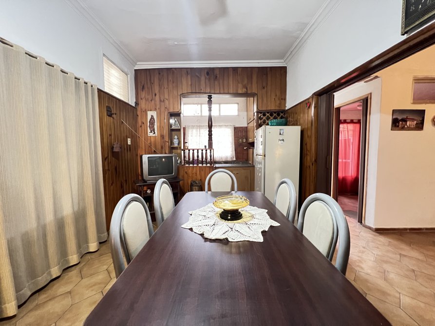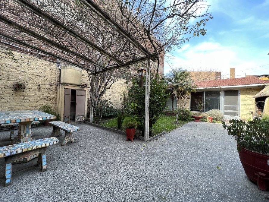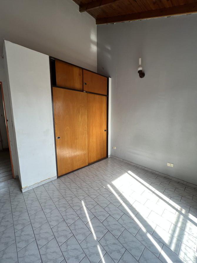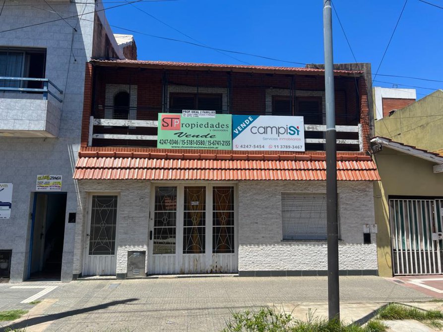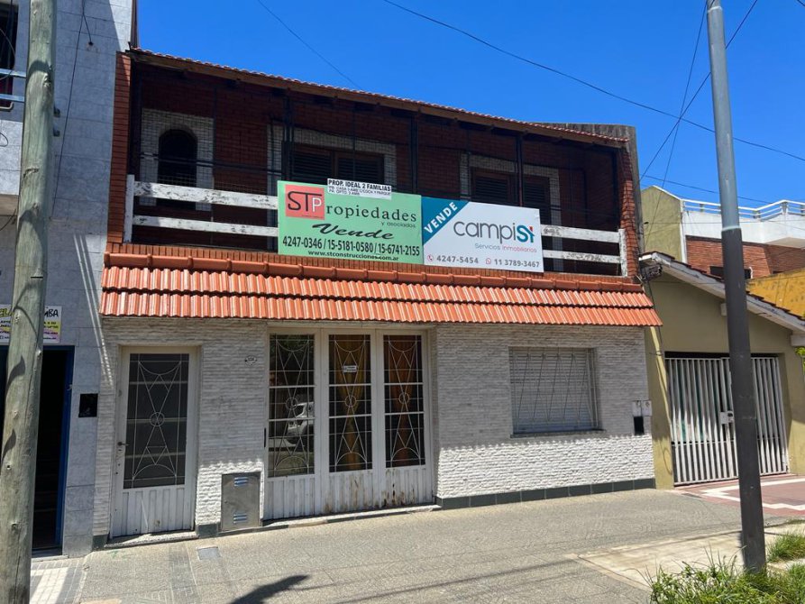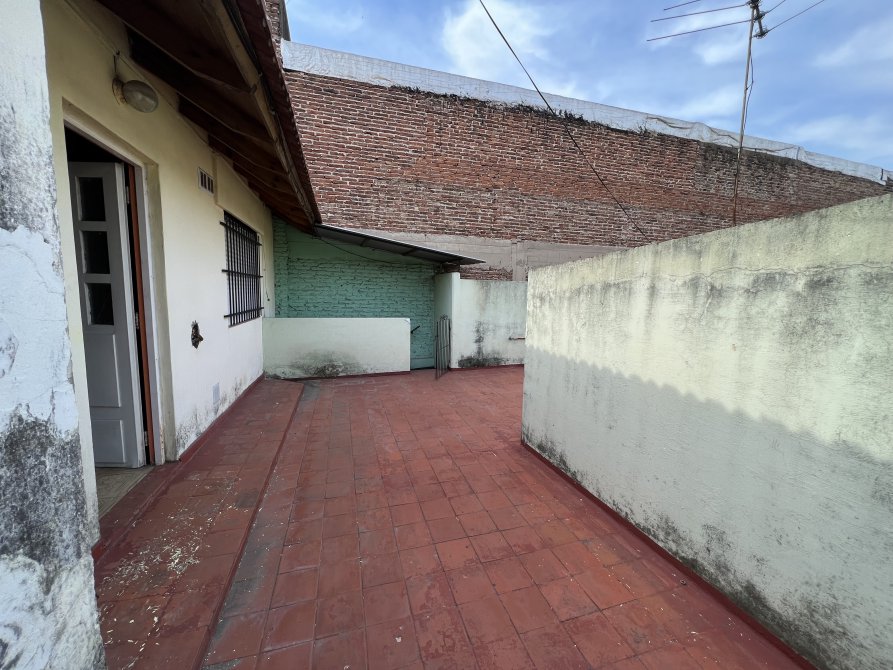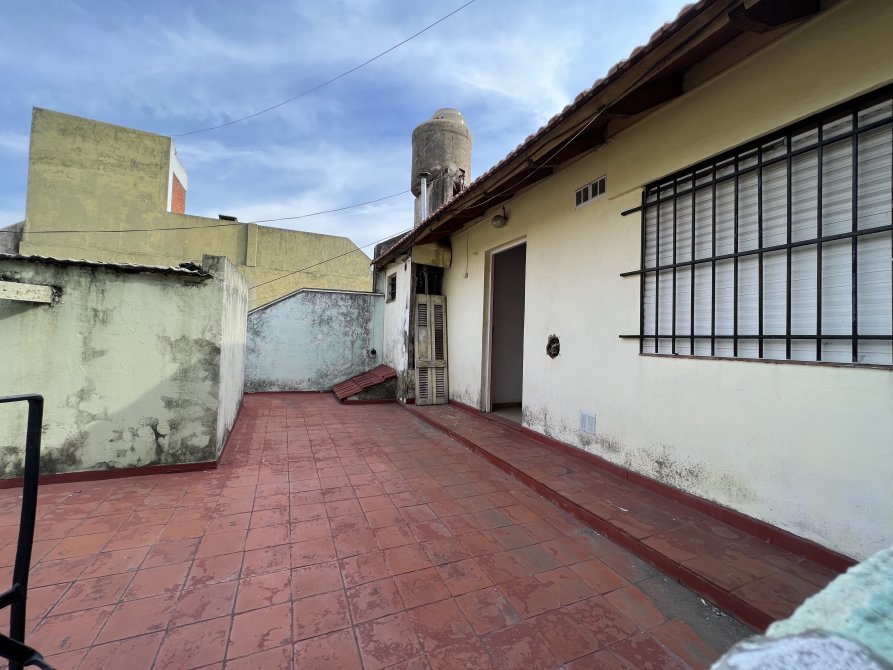 En planta alta: departamento de 3 ambientes en buen estado, con terraza al contra frente (se accede desde este sector por un pasillo lateral). Consta de estar comedor; baño completo, cocina con ventilación al frente y dos dormitorios amplios con placar y balcón corrido al frente.