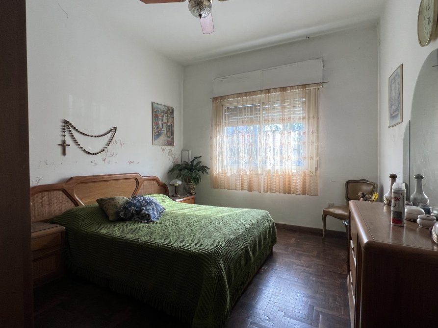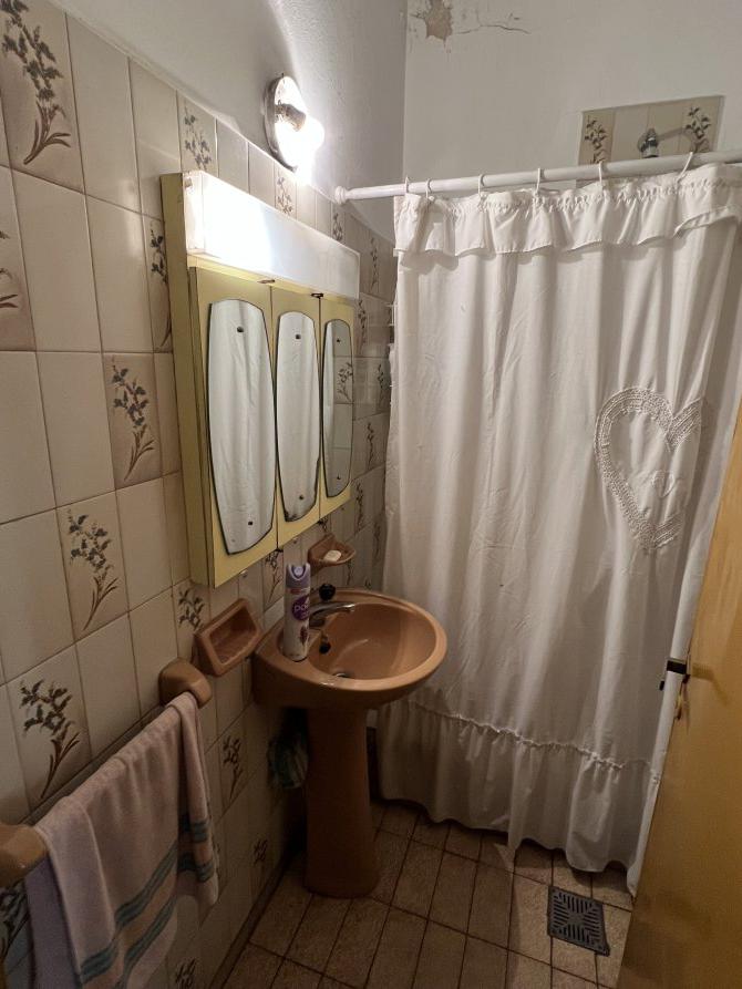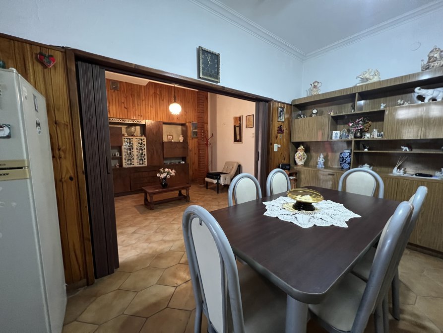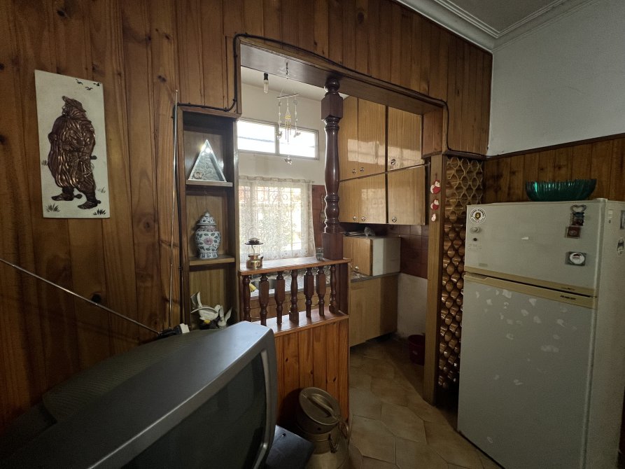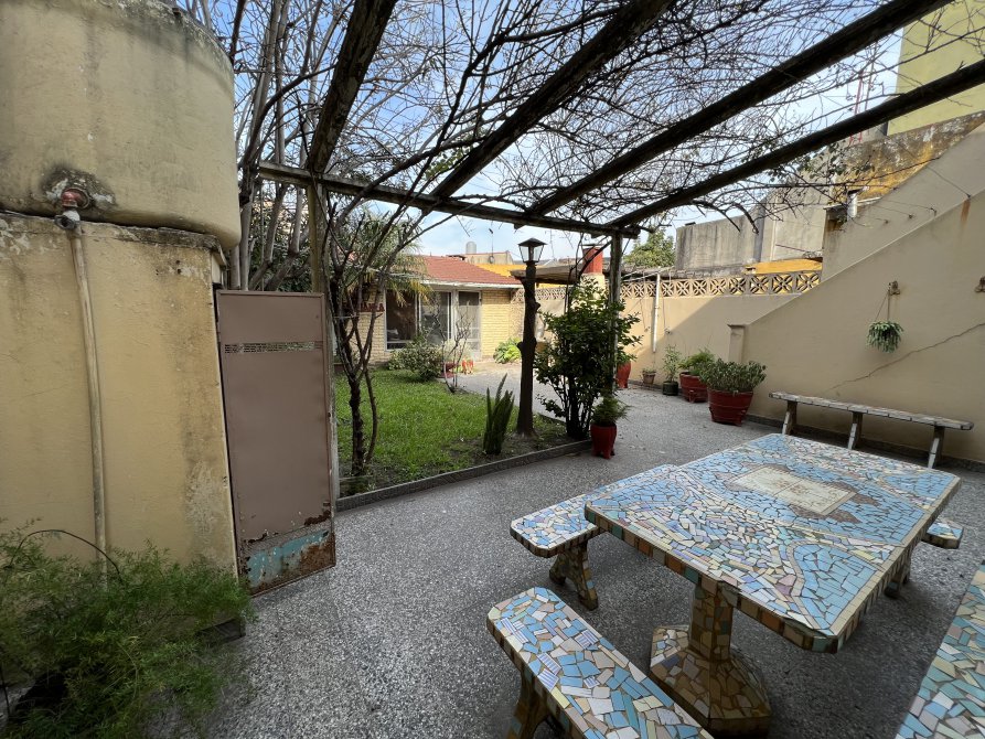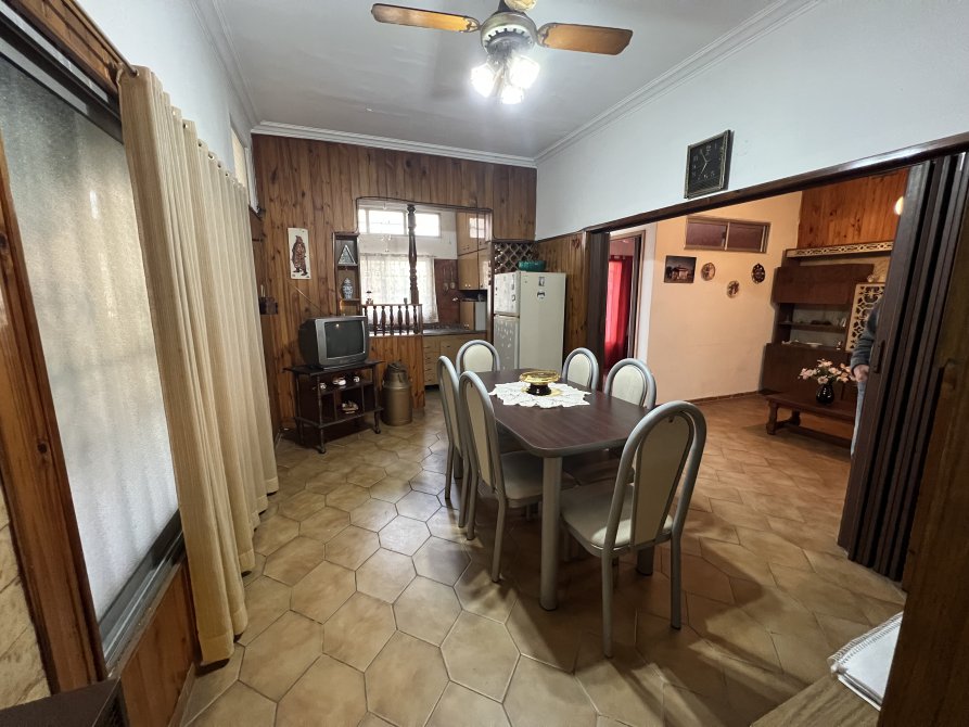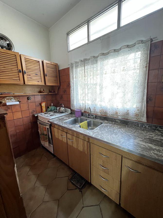 En planta alta: departamento de 3 ambientes en buen estado, con terraza al contra frente (se accede desde este sector por un pasillo lateral). Consta de estar comedor; baño completo, cocina con ventilación al frente y dos dormitorios amplios con placar y balcón corrido al frente.