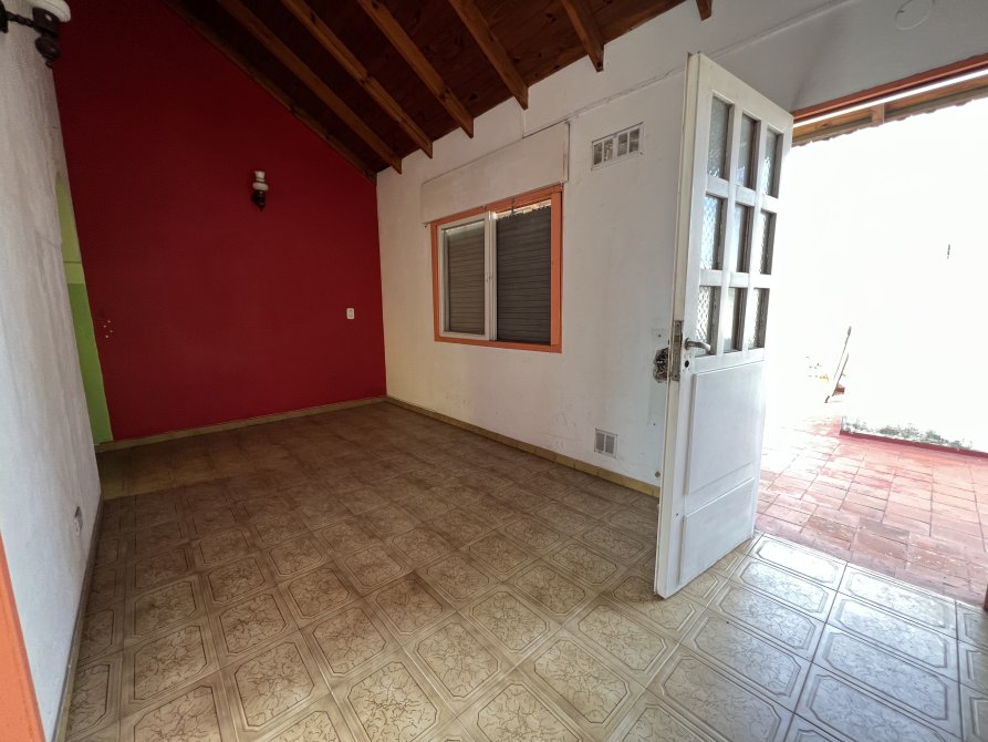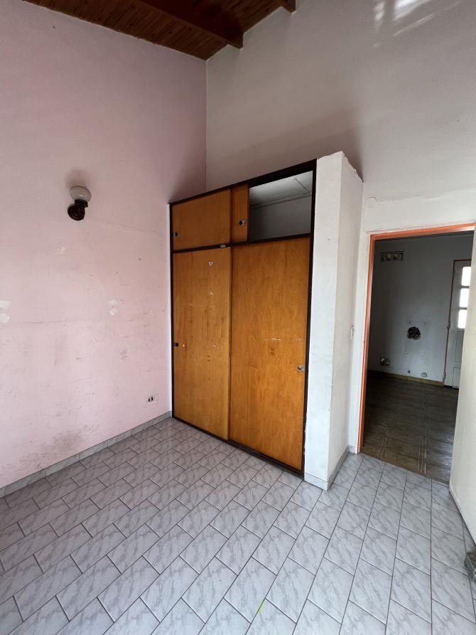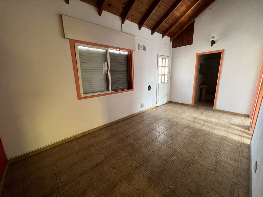 Al frente; garaje cubierto y amplio dormitorio con pisos de parquet; un baño completo; cocina comedor diario y living; 2do dormitorio al contra frente.