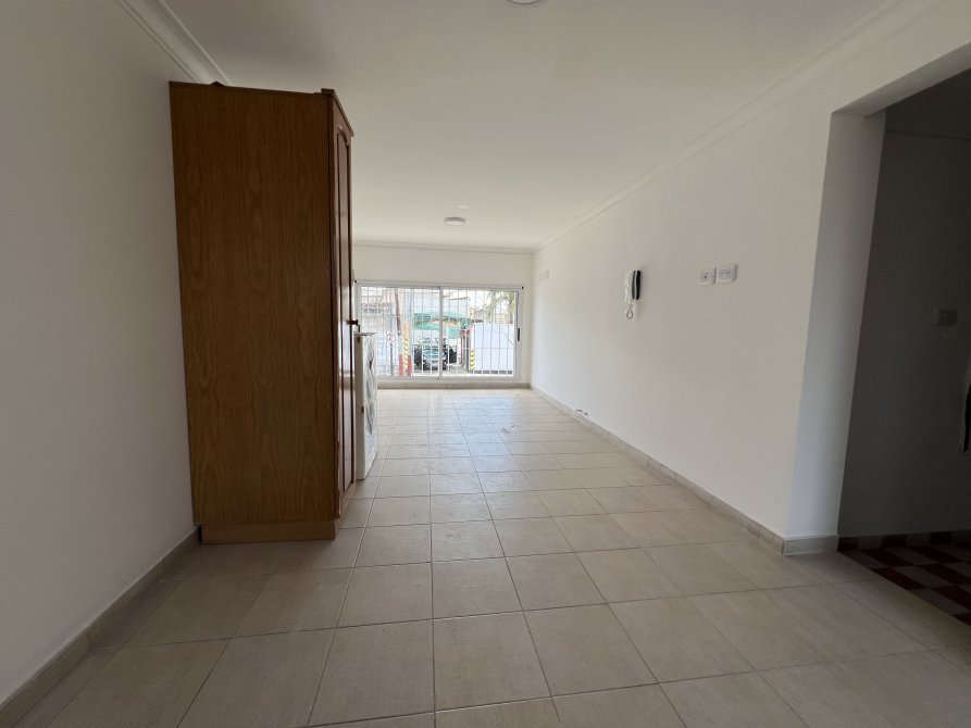 Consta de ambiente principal de 6 x 2,50 con ventanal a la calle; cocina separada con bajo mesada y alacena, artefacto cocina electrico, espacio para lavarropas; baño nuevo, con box, sin bidet.