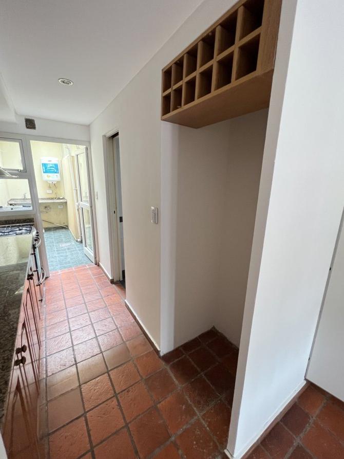 Consta de ambiente principal con ventanal a la calle; frentes e interiores de placard; con mueble divisor y mueble de apoyo para guardado; cocina con muebles bajo mesada y alacena, artefacto cocina a gas y campana de acero inoxidable; baño completo con bañera y ventilación natural; pequeño patio con techo y espacio para lavadero con pileta.