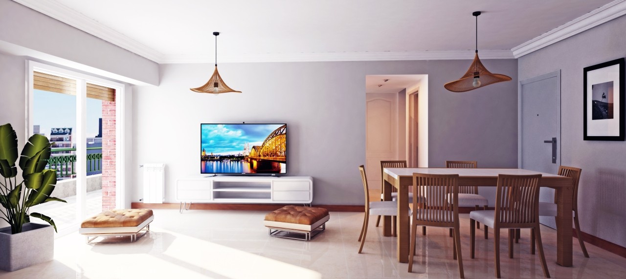 - Living al frente de 6 x 3 con pisos de porcelanato con acceso a balcón a la calle